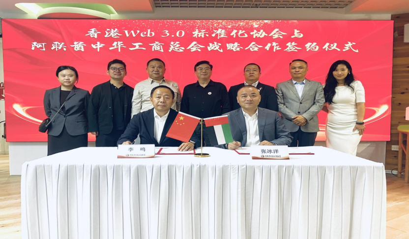 在充分交流的基础上,李鸣会长与张冰洋会长共同签署了战略合作协议。双方将聚焦Web3.0领域的标准研制、技术探索、人才培养、产业服务、生态建设等方面,共同推动香港和阿联酋的产业合作。同时,港标协将在阿中总的支持下建立迪拜办事处,与阿中总在中东地区共同推进RWA注册登记服务。