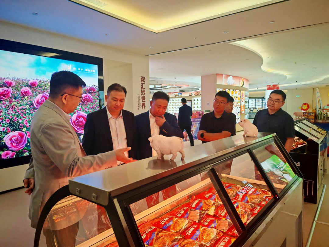 在双汇大厦,漯河市侨商会名誉会长、双汇发展副总裁张斌向考察团一行详细介绍了双汇发展历程、目前产品种类及销售情况等,就农畜品深加工进行了深入交流。