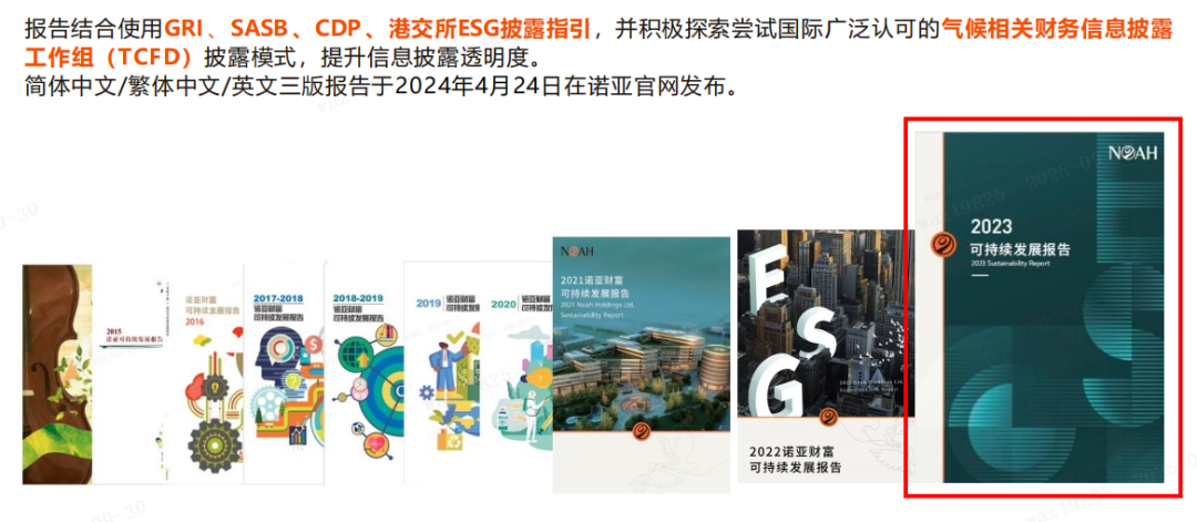 自2014年以来,诺亚控股已连续11年发布可持续发展报告,2024年度报告围绕七大核心板块,系统展现诺亚在ESG的责任行动与数据进展,期望让更多利益相关方了解诺亚在创造经济、环境及社会价值上的努力。