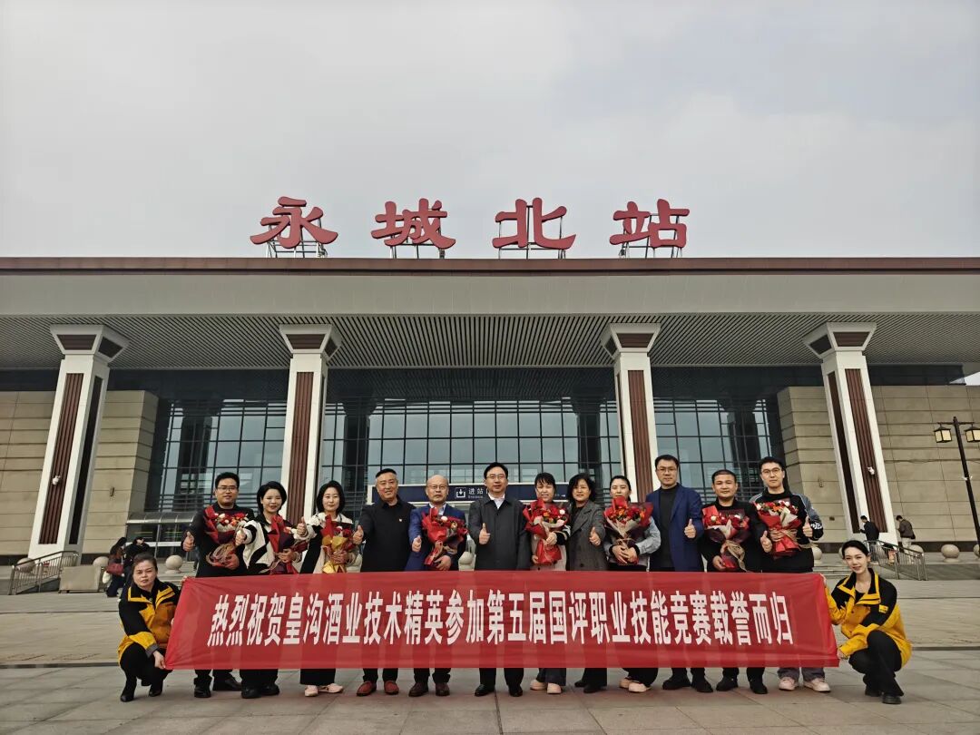 金秋传捷报,馥香绽荣光!10月29日,备受行业瞩目的第五届国家级白酒评委职业技能竞赛圆满落幕,皇沟酒业技术天团凭借深厚的专业积淀与精湛的品评技艺,在全国众多顶尖选手的激烈角逐中脱颖而出,再度为豫酒争光,为馥香添彩!10月31日,皇沟酒业党委书记、副董事长张树强,党委委员、中心经理石晏,工会主席、副总经理张侠前往车站迎接,以最诚挚的敬意与热烈的掌声,致敬这支在全国顶尖赛事中彰显豫酒匠心的技术队伍。
