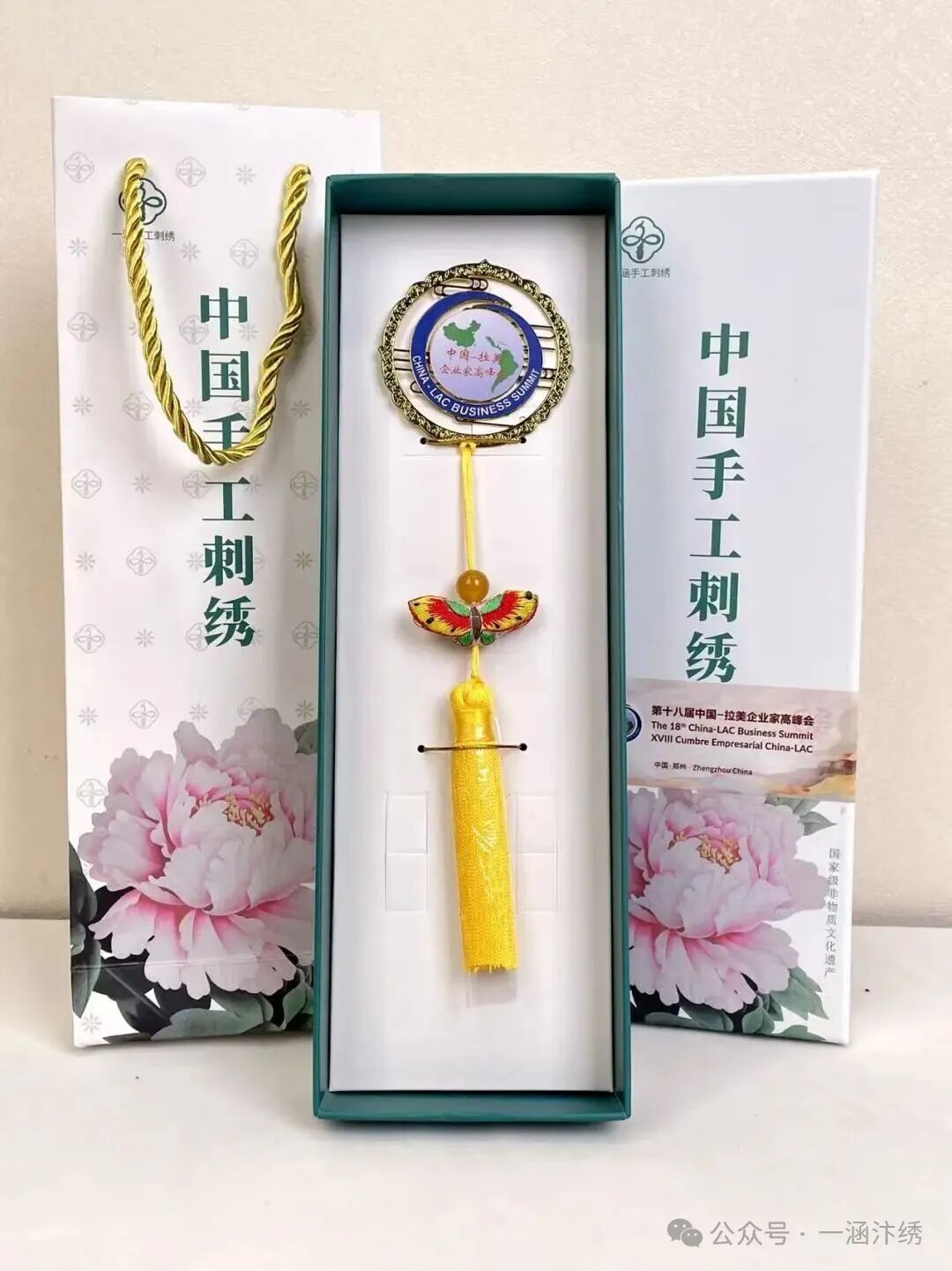 这份承载着深厚文化底蕴的手工汴绣书签,作为本次高峰会的官方伴手礼,有着非凡的意义。作为高规格外事礼品,它既体现了东道主河南省对来自拉美及世界各地远道而来政商嘉宾的崇高敬意与美好祝福,传递了河南的文化温度,也向世界展示了中国传统非遗的非凡魅力,助力中拉文化交流互鉴,推动中华优秀传统文化在国际舞台上绽放光彩。