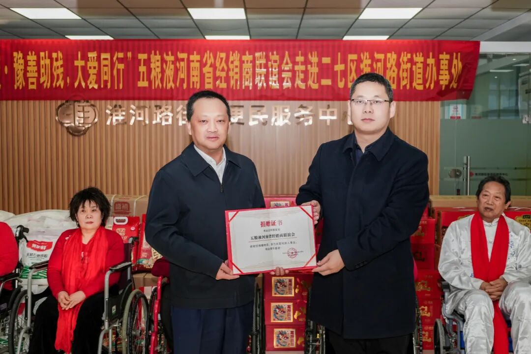 12月9日,五粮液河南省经销商联谊会在郑州市二七区淮河路街道办事处举行“五粮液·豫善助残,大爱同行”捐赠活动。作为联谊会会长单位,河南盛林以实际行动履行企业社会责任,为残疾人群体送去温暖与关怀。