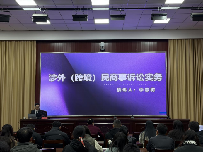 2025年12月25日,周口市司法局和周口市律师协会联合举办“涉外民商事诉讼实务”讲座,文丰所合伙人李慧柯主讲《涉外民商事诉讼实务》。