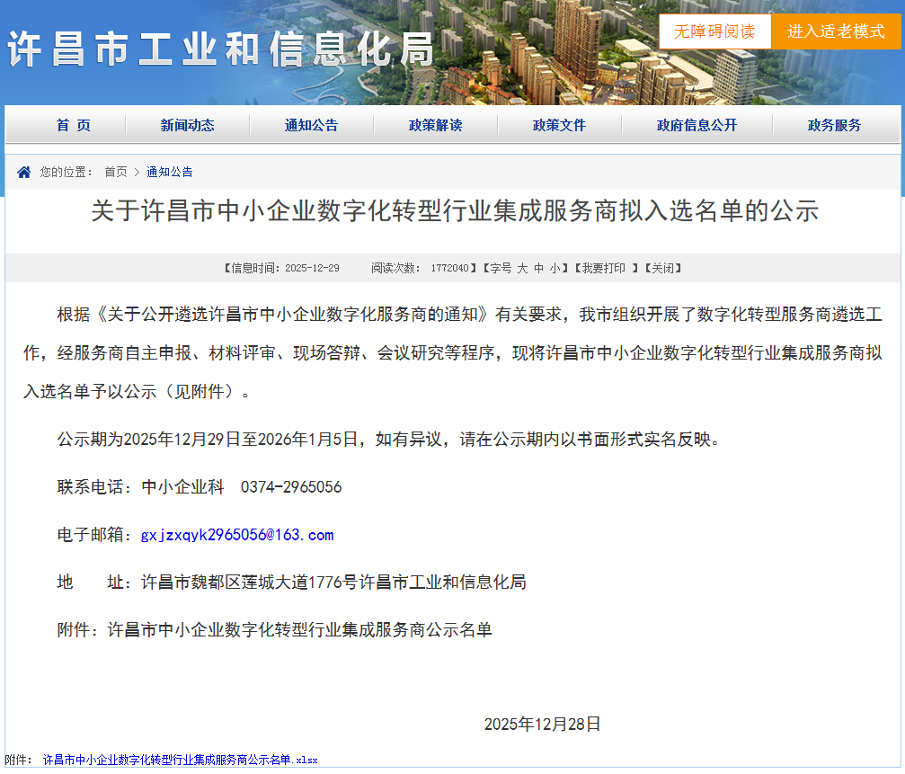 此次入选不仅为中机六院自身发展带来新机遇,也将为许昌及周边区域中小企业数字化转型提供专业支撑,助力当地制造业向智能化、绿色化、融合化方向升级,对优化地方产业结构、促进经济高质量发展具有积极意义。