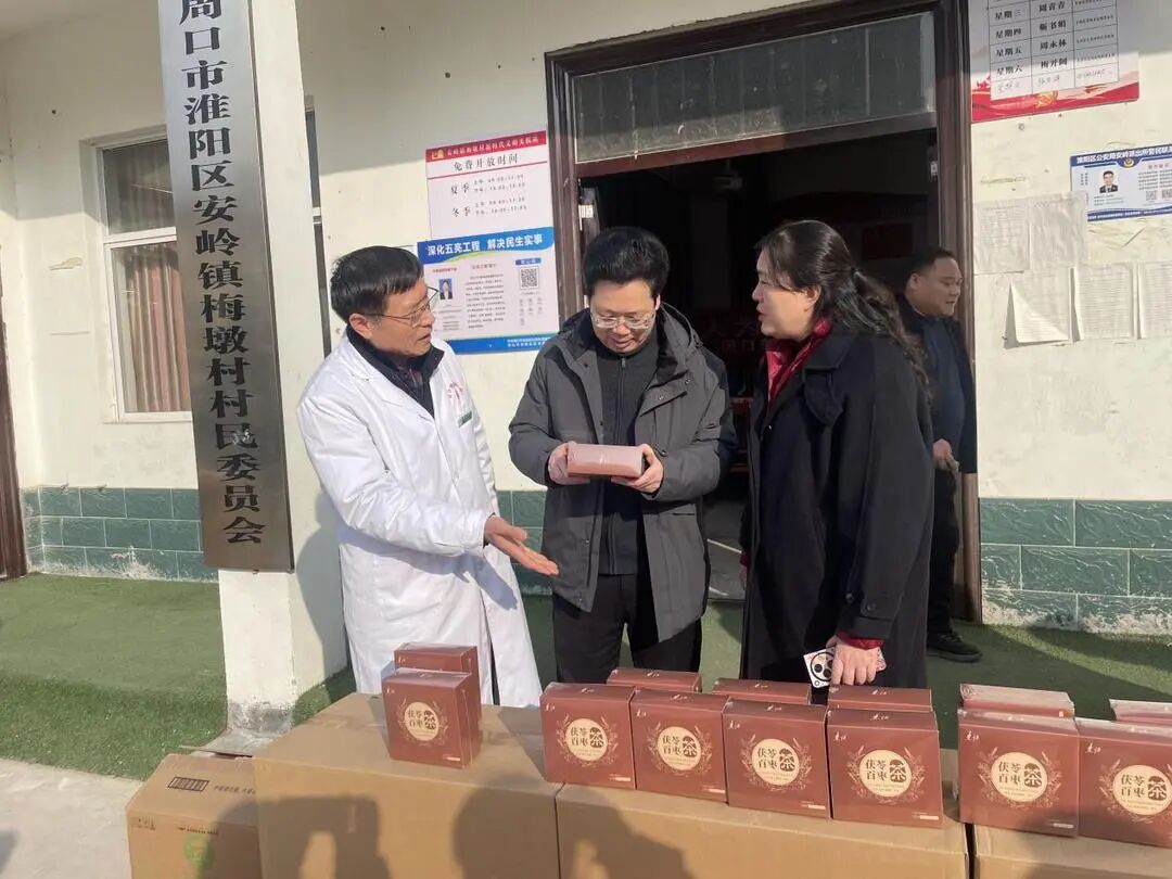 寒冬腊月暖意浓,侨界关怀暖民心。2月3日,周口市侨联组织侨界企业、医疗机构及相关单位负责人,赴淮阳区安岭镇梅墩村开展“暖冬志愿行•服务惠民生”新春走访慰问活动,周口华侨医院积极响应、全程参与,与村镇干部就深化对口帮扶、助力乡村振兴开展现场对接交流,同时为村民送上精准医疗帮扶与暖心物资,将专业健康服务和新春关怀精准送达村民心坎,为乡村振兴注入强劲侨界动能。