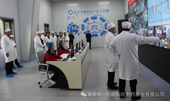 调研组深入利欣制药数字化智能车间,实地观摩了全自动智能生产线运行情况。车间内,智能输送系统精准调配原料,全自动一步法制瓶与自动灯检机构成高效生产链,机器人作业区实现药品装架、卸架、包装、输送全流程无人化操作。在中央控制室,大屏实时显示生产数据、设备状态和质量指标,技术人员通过数字化平台对车间进行远程操控。李明山博士介绍,企业在自动化的基础上引入十多个机器人和机械臂,集成信息化、物联网、大数据和人工智能等先进技术,建成河南省制药行业首个智能化示范车间。