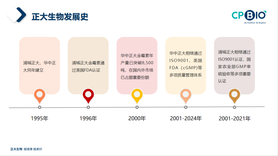 正大生物的发展足迹与中国生物科技的演进脉络高度契合。1995年正大集团战略注资开启全球化征程,从1996年作为亚洲首家企业对接美国FDA国际标准,到2003年实现2万吨产能的历史性跨越。截至2024年,正大生物完成战略升级,深度进军治疗性生物制品领域。这一系列里程碑式的突破,标志着公司完成了从规模驱动向创新引领的跨越式转型,始终伫立于行业创新的最前沿。