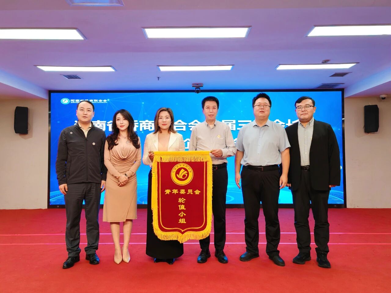 青年是未来的希望。会议举行了青年委员会轮值主任交接仪式,顺利完成从第三季度到第四季度的轮值工作交接。新一任轮值主任,河南省侨商联合会副会长陈雪平、梁斌履任新职,表示将继承发扬青委会优良传统,以活力与创新为商会注入新动能,三任轮值主任合影留念。