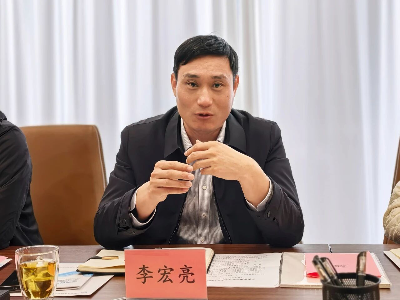 李宏亮书记在讲话中阐述了此次来访的三点初衷:一是加强荥阳侨联、侨商会与省侨商会的对接碰撞,深化合作与交流;二是带领荥阳侨商会成员“走出来”学习经验、开阔视野,思考如何更好地立足荥阳、服务本土企业;三是介绍荥阳市经济发展现状与规划。他指出,荥阳在2025年成功创建国家级文明城市,也在“2025年全国综合实力百强县市榜单”中位列第60位,规上企业增长态势良好。在贯彻“十五五”规划中对企业如何下一步发展的指示中,荥阳积极引导企业拓展国际视野,推动出口增长,融入国家统一大市场建设,鼓励企业“向外拓展、杜绝内耗”。他表示,此次交流只是一个开始,未来将筛选更多企业与产品来此交流对接,并且他认为荥阳有基础、有信心把侨商会建设好,并期待省侨商会给予更多指导与赋能。