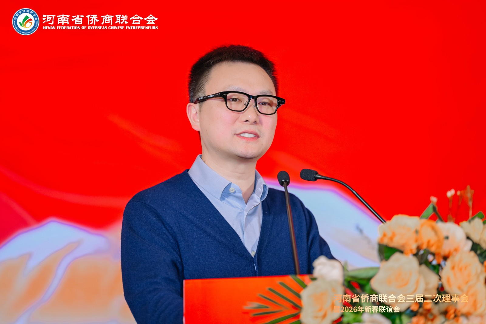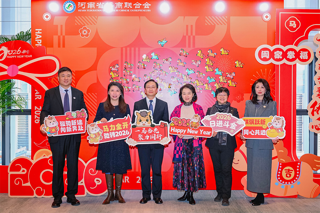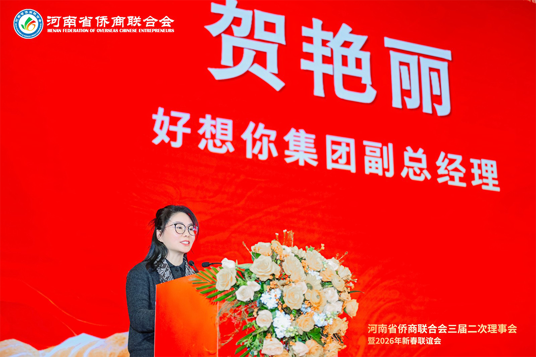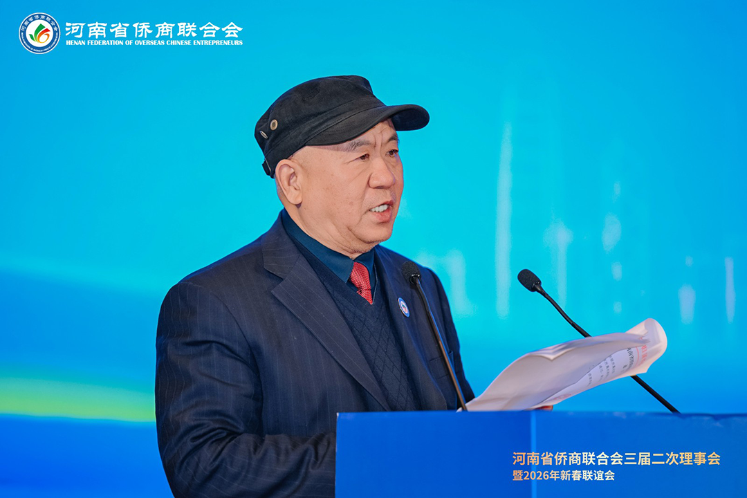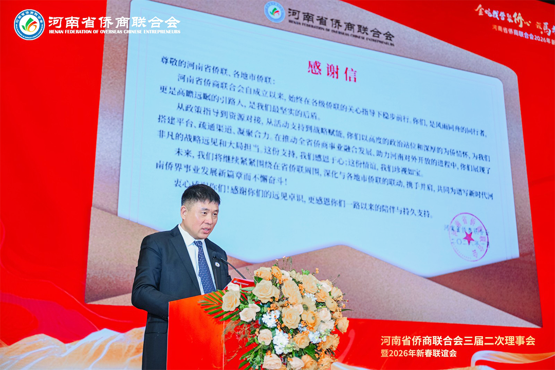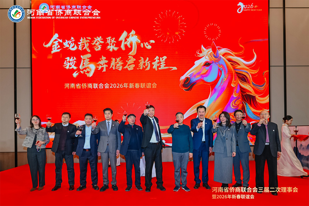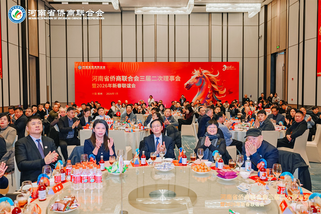 岁序更替,华章日新。1月21日下午,河南省侨商联合会三届二次理事会暨2026年新春联谊会隆重举行。河南省侨联党组书记、主席杨海强,党组成员、副主席吕剑,文化经济联络部副部长李丹丹;河南省人民政府侨务办公室侨务事务处处长、一级调研员王润玲,侨务综合处二级调研员王涛,侨务事务处副处长、三级调研员罗文洁;郑州市侨联党组书记、主席时旭,党组成员、一级调研员贾风雷;开封市侨联党组书记、主席胡广军,秘书长冯志祺;鹤壁市侨联党组书记、主席赵小玲,党组成员、副主席付英;焦作市侨联党组书记、主席王恒进;濮阳市侨联党组书记、主席朱腾强;商丘市侨联党组书记、主席赵劲松;周口市侨联党组书记、主席刘淑红,办公室主任王雪伟;平顶山侨联主席王文玉;济源市侨联主席王会东;许昌市侨联党组成员、副主席郭惠霞;驻马店市侨联党组成员、副主席张玮,秘书长谢威;信阳市侨联秘书长雷伟;鹤壁市淇县统战部副部长、侨联主席董瑞民;河南大学党委统战部副部长黄鑫,河南财经政法大学管理学部执行部长、中国(河南)企业出海研究院院长王永伟,郑州智能科技职业学院副校长王发清,法国河南同乡会会长祝晓琳,马来西亚工商协会副会长杨蒂娜,美国加州河南促进会会长、海外炎黄文化传承基金会董事长张丽莉,澳大利亚河南青年会会长王皓,清华大学建筑设计研究院文化旅游院副院长郑波,清河云选创始人赵永,里斯中国战略研修院增长中心合伙人郭君仕等受邀参会,与我会会长郑定辉,驻会执行会长王广国,党支部书记罗建中,执行会长陈向辉、李明献、宋保山,常务副会长苗青、刘喜顺、王如民、赵天星、张士勇、楚喆、胡淇皓、姜正金、石聚领、马德寿,秘书长柴莉,副会长王继璋、王建棋、宋军、侯占元、王培雷、赵静、陈雪平、罗利、周伟民、王世印、郑海霞、杜新峰、党秀浩、梁斌、代月红、赵辉、管世昌、王永伟、徐萌婕,以及其他全体理事会成员欢聚一堂,在温馨祥和、昂扬奋进的氛围中,迎接充满希望的丙午马年。