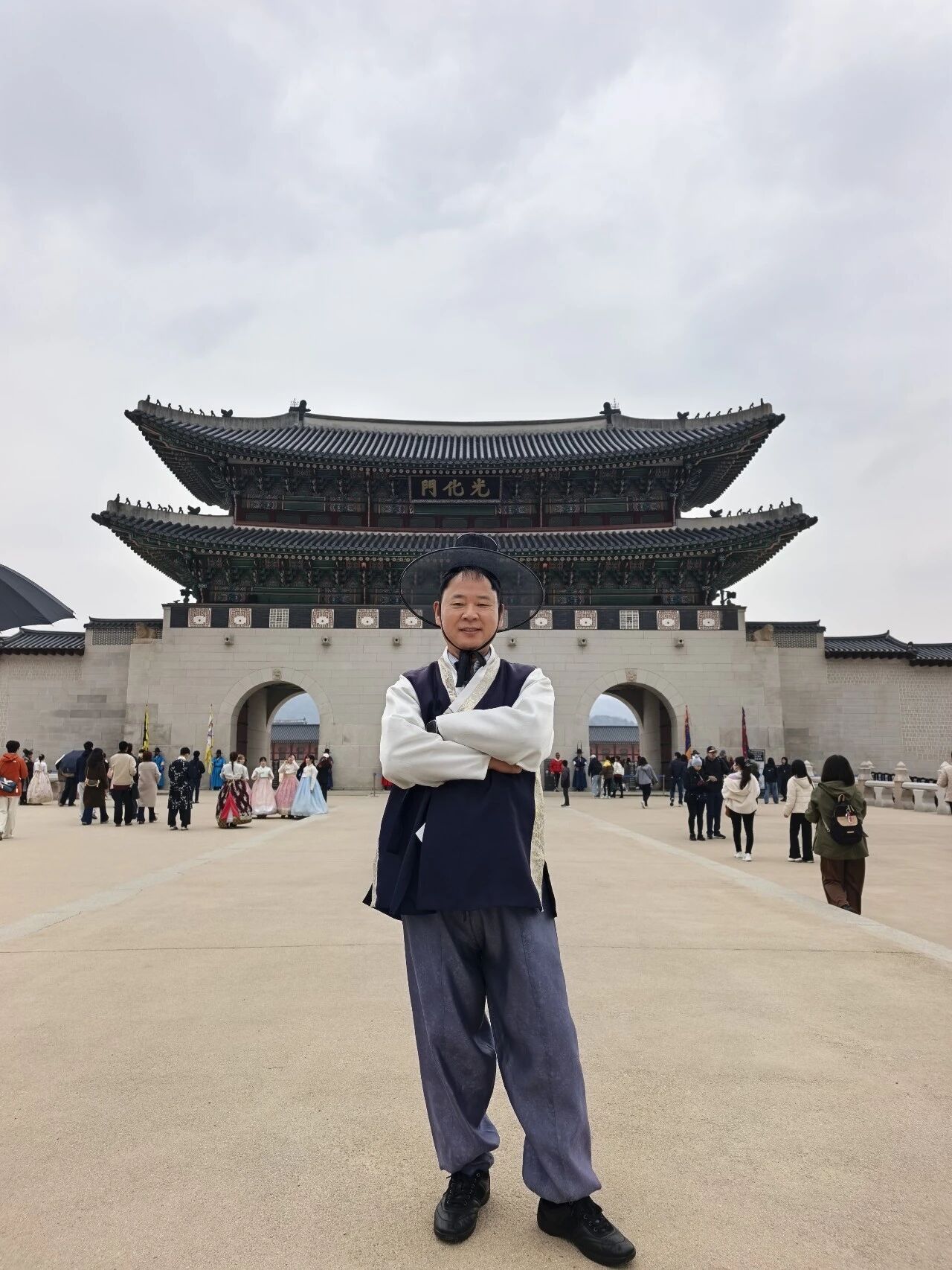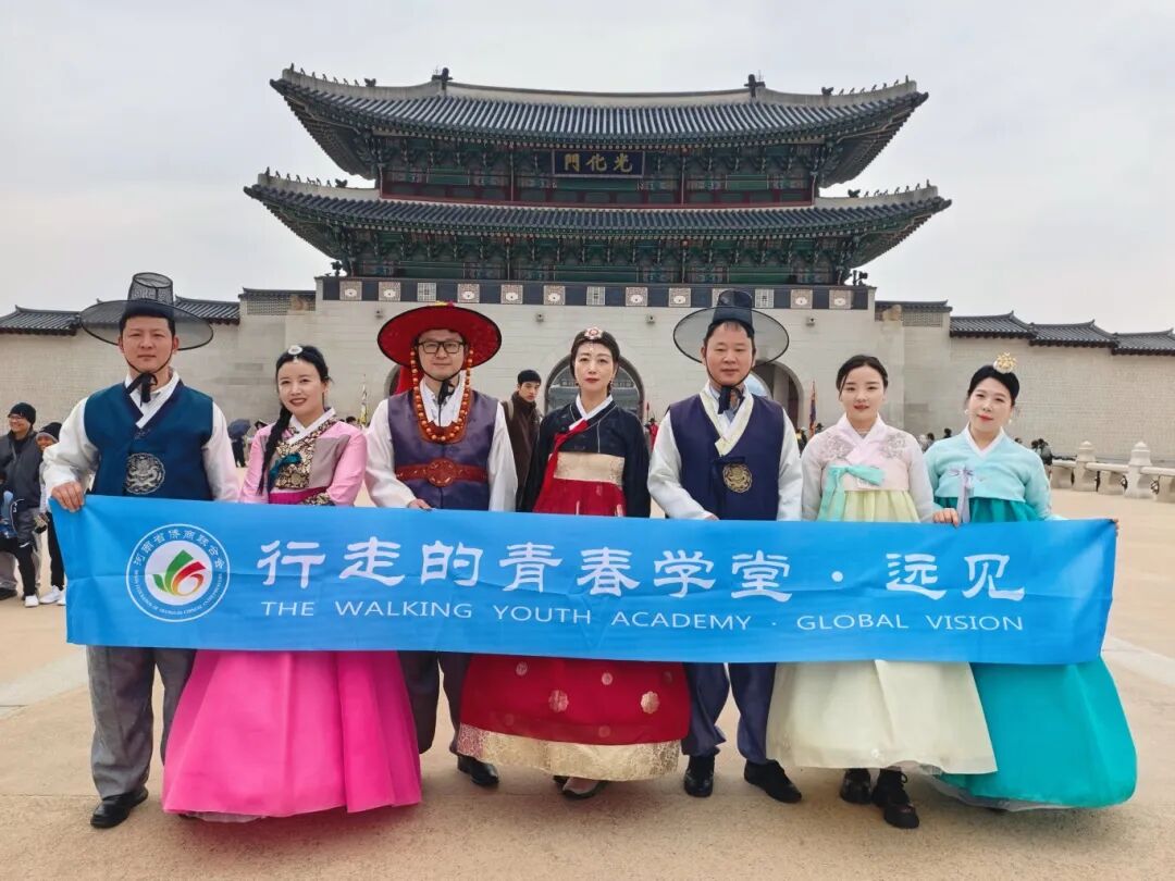 考察团一行还走进了韩国著名历史文化遗址——景福宫,开展了一场别开生面的文化体验活动。作为韩国最具代表性的古宫,景福宫承载着深厚的历史底蕴。成员们在参观过程中,深入了解韩国传统文化与建筑艺术,感受两国历史文化之间的异同。为加深体验,团员们还亲身试穿了韩服,在古色古香的宫殿群中漫步,沉浸式感受异国服饰的独特魅力。此次文化游览不仅增进了大家对韩国历史文化的认知,也促进了团员间的互动交流,进一步丰富了青委会的文化建设内涵。