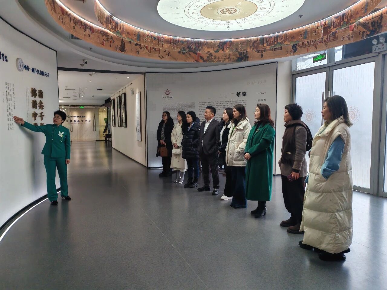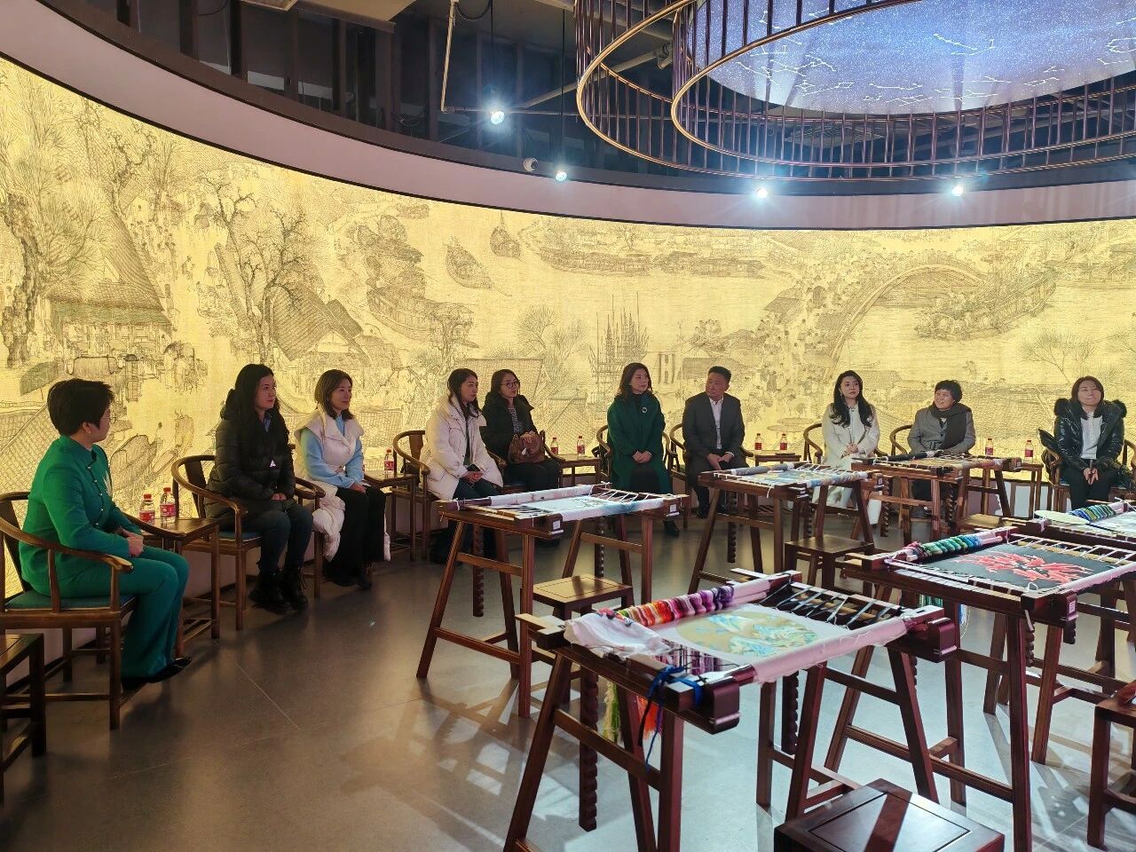 活动伊始,大家参观了一涵刺绣博物馆,开启了一场与千年绣脉的对话。在万小娟的引导与讲解下,大家“溯·千年绣脉”,仿佛穿越了时空,聆听了汴绣从北宋宫廷走向市井街巷的千年传奇,深刻感受了“以针为笔、以线为墨”所绣出的山河万象与文化厚度。