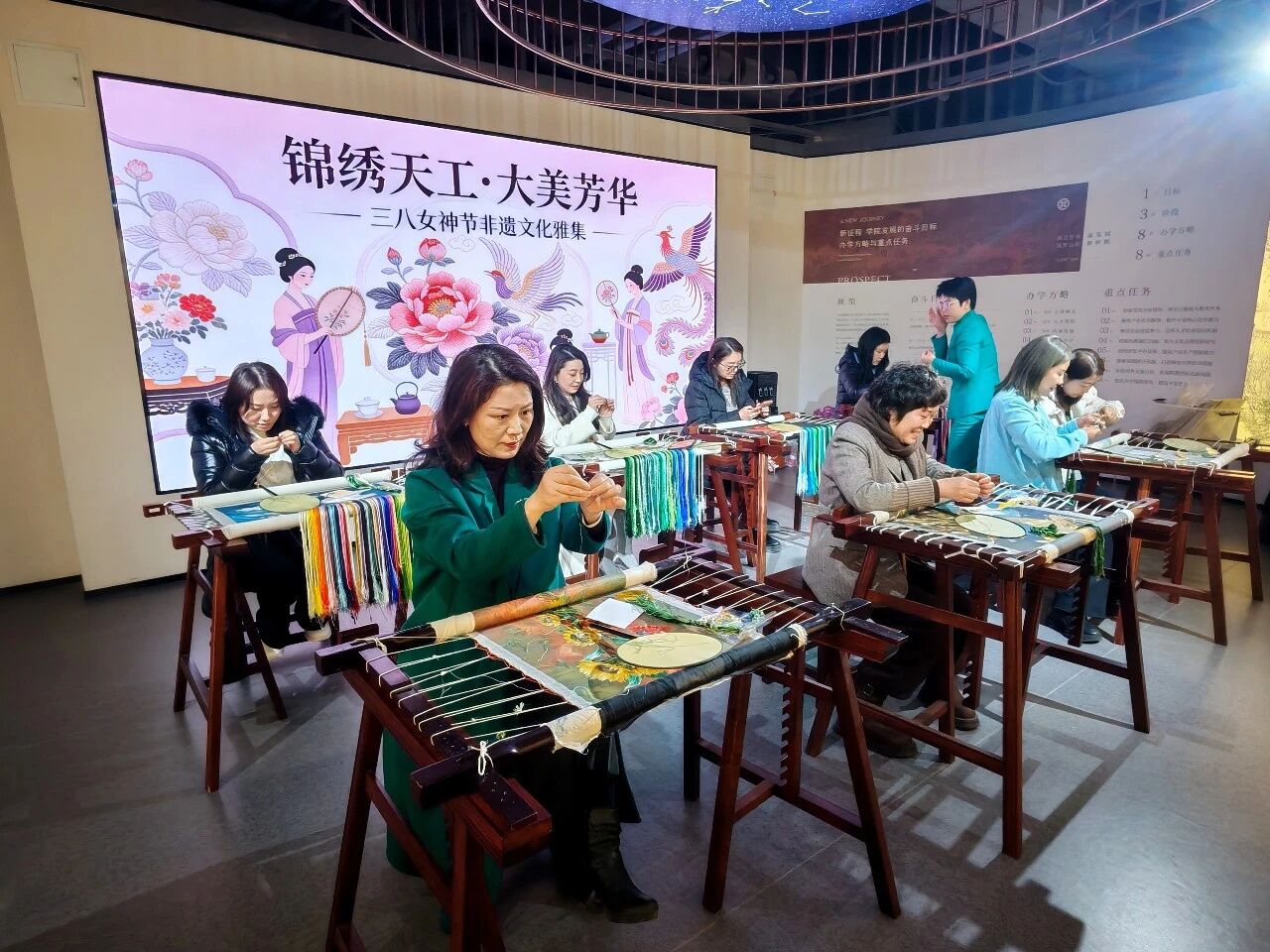 本次活动以“让非遗走进生活,让女神遇见匠心”为初衷,旨在为平日里驰骋职场、兼顾家庭的女性会员们提供一个放慢脚步、滋养心灵的契机。活动地点选在人文气息浓厚的河南经贸职业学院一涵刺绣博物馆,古韵与青春在此交融,为这场非遗盛宴增添了别样的书卷气。